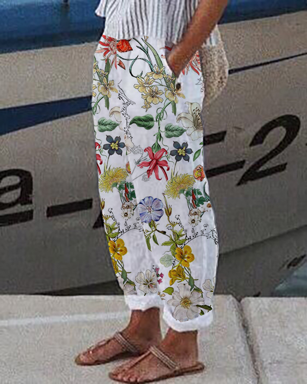 Women's Retro Floral Loose Casual Pants (With Pockets)
