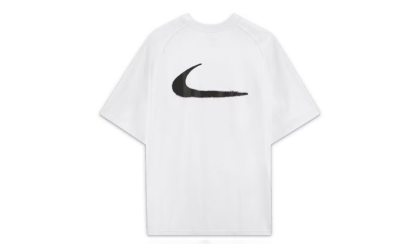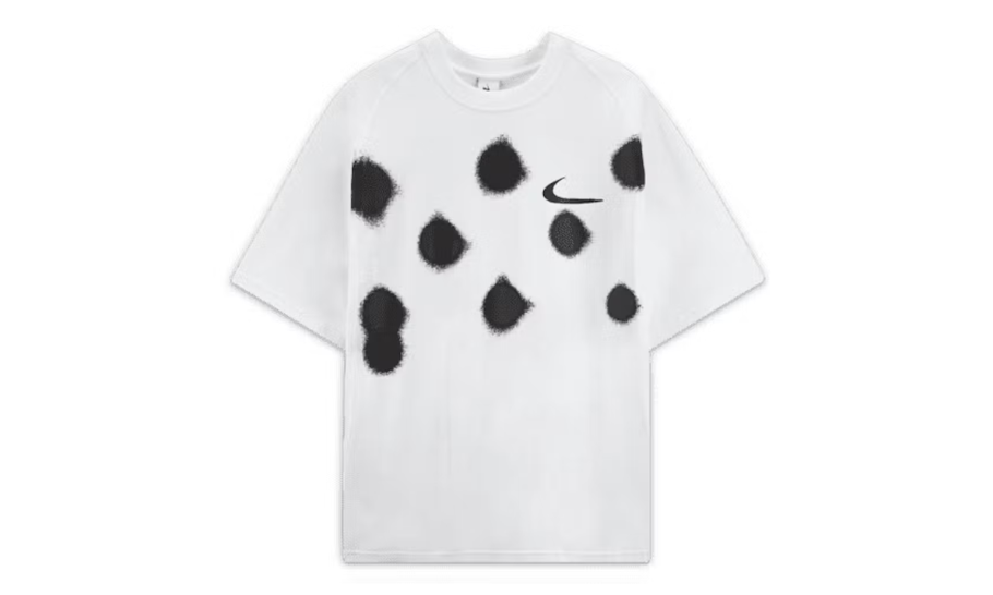 Acest tricou special Off-White x Nike prezintă un model Spray Dot și un logo Nike Swoosh în față. Spatele tricoului prezintă sigla Nike Swoosh de arhivă pe care Off-White a folosit-o în colecțiile lor în trecut.