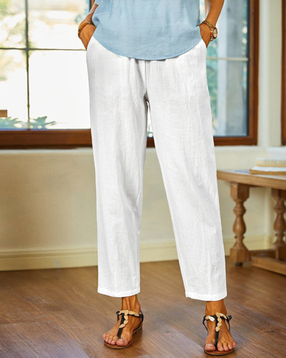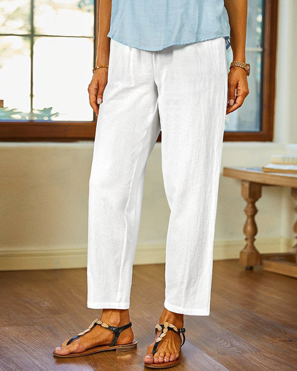 Women's White Casual Pants with Pockets