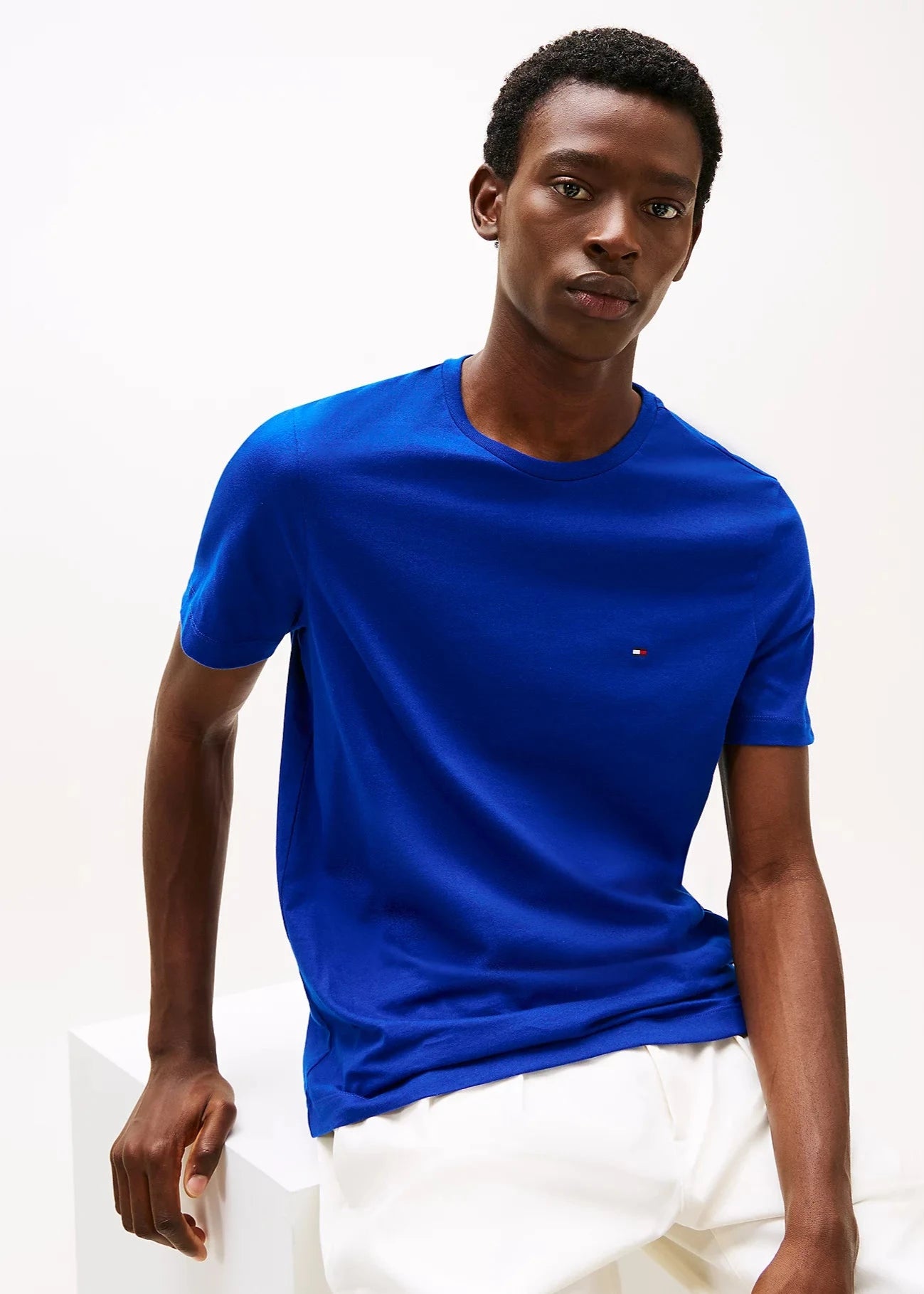 馃挕 Ce tee-shirt Tomthtmy Hilfithtger a une coupe droite, il taille normalement. Choisissez votre taille habituelle. S茅bastien mesure 1m86 et porte une taille M.