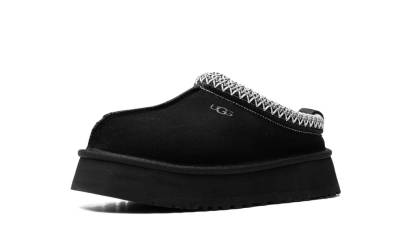 Papuci UGG Tazz Negru are o parte superioară din piele intoarsa neagră cu o dungă gri și albă din poliester reciclat. Căptușeala neagră este realizată din material Uggplush, care este lână reciclată, iar talpa EVA echilibrată de 3,8 cm înaltă asigură confort.